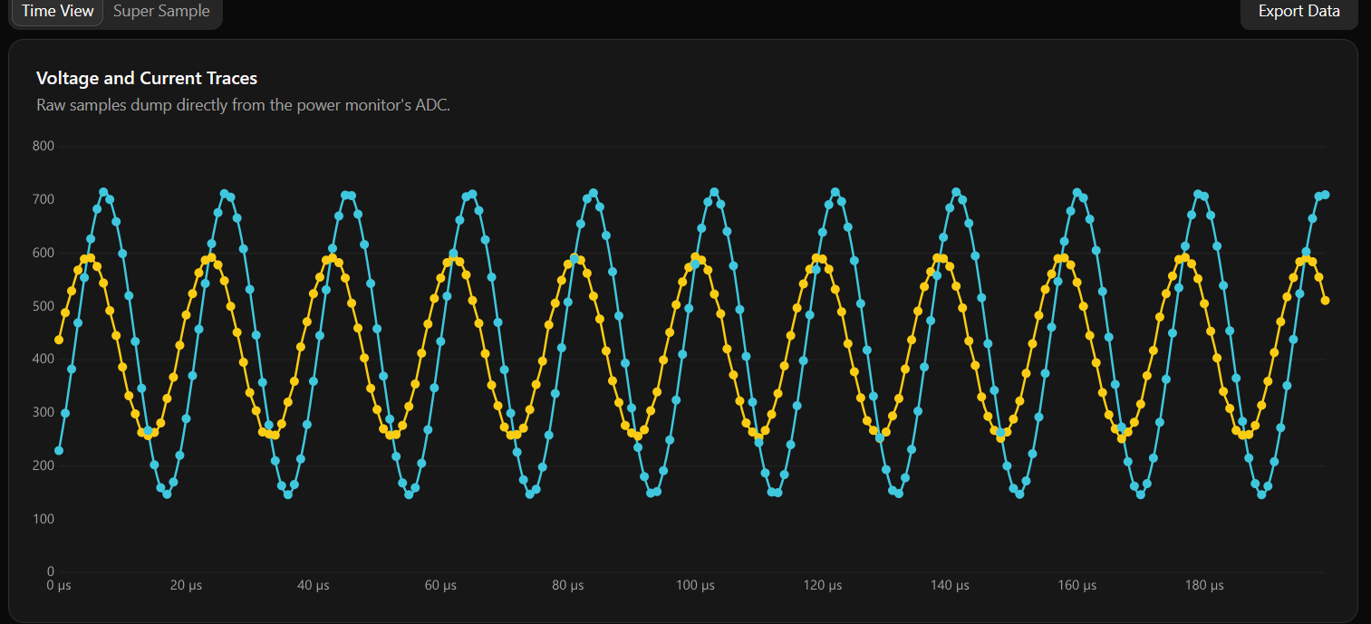 Here’s where the magic happens. Most power meters sample voltage and current in a tight loop, accepting the small phase error between samples. We refused to accept that error.