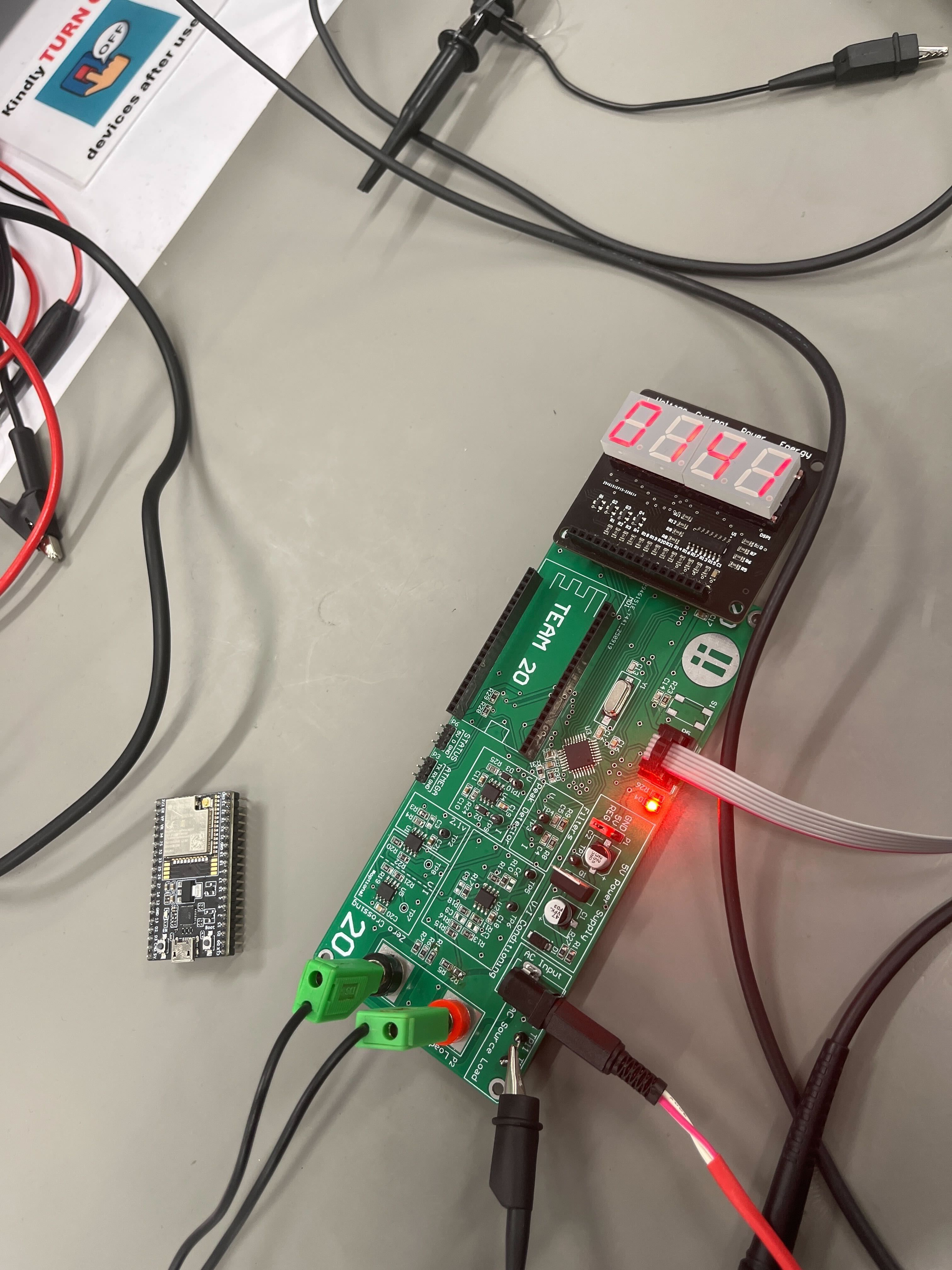 With the analog front-end feeding clean signals and our timing issues solved, the ATMega328PB could finally do its job. The 7-segment display provided immediate local feedback - power readings updated in real-time without needing to connect to the web interface.