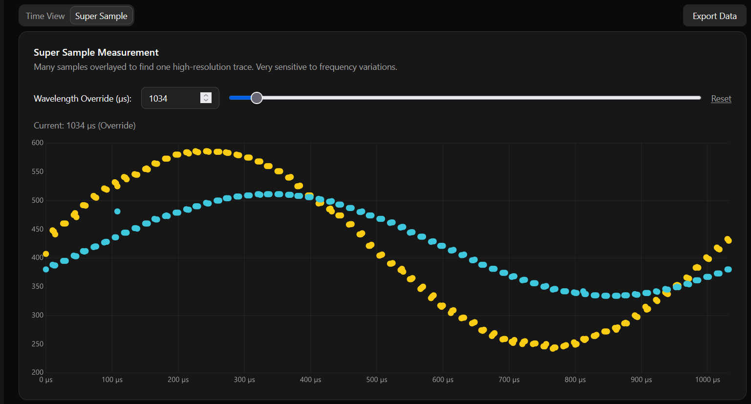 The phase-locked sampling wasn’t just for accuracy - it let us build something beautiful. Our oscilloscope mode captured a large sample of these perfectly aligned waveforms and pushed them up to the web interface on demand.