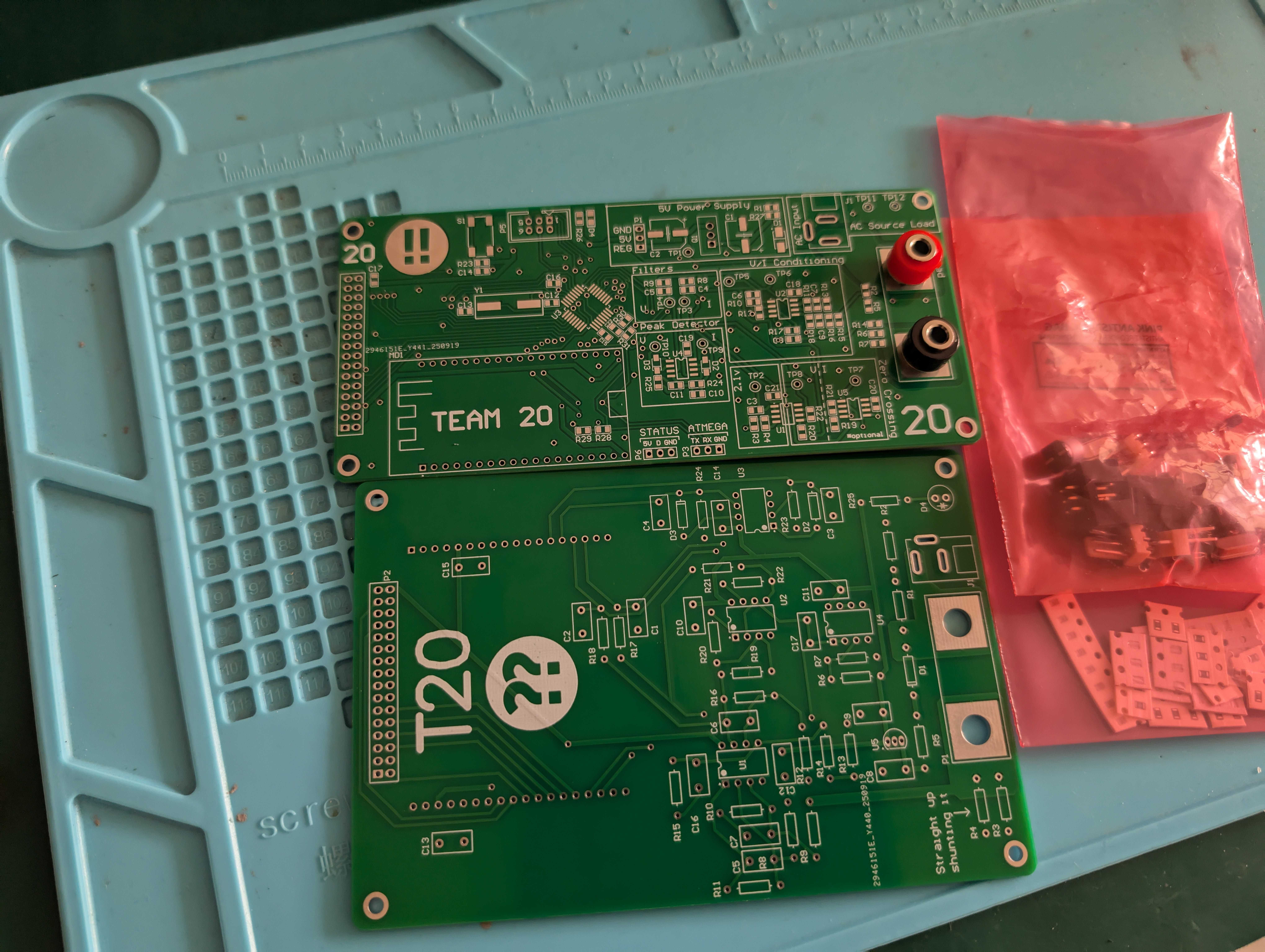 - Double-layer PCB with the cheapest SMT components the Uni could source