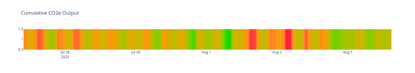 The amount of extra CO2e emitted by the grid if you turned on an appliance, in gCO2e/kwh. Heavily influenced by sources of power and the operational status of power-plants, meaning it has much longer cycles than the Cumulative Output.