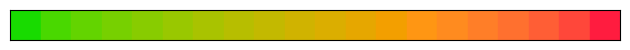 I made both options available for developers, but I went with the Cumulative CO2e Output by default because of its daily cycles, which is more informative for telling a user when during the day to charge their car, rather than screaming at them to not charge it for a week straight. For display on the micro-indicators, the last step is to translate the metric onto a green to red colour scale, which I developed in the Oklab perceptually uniform colour-space with a set luminosity across the entire scale.