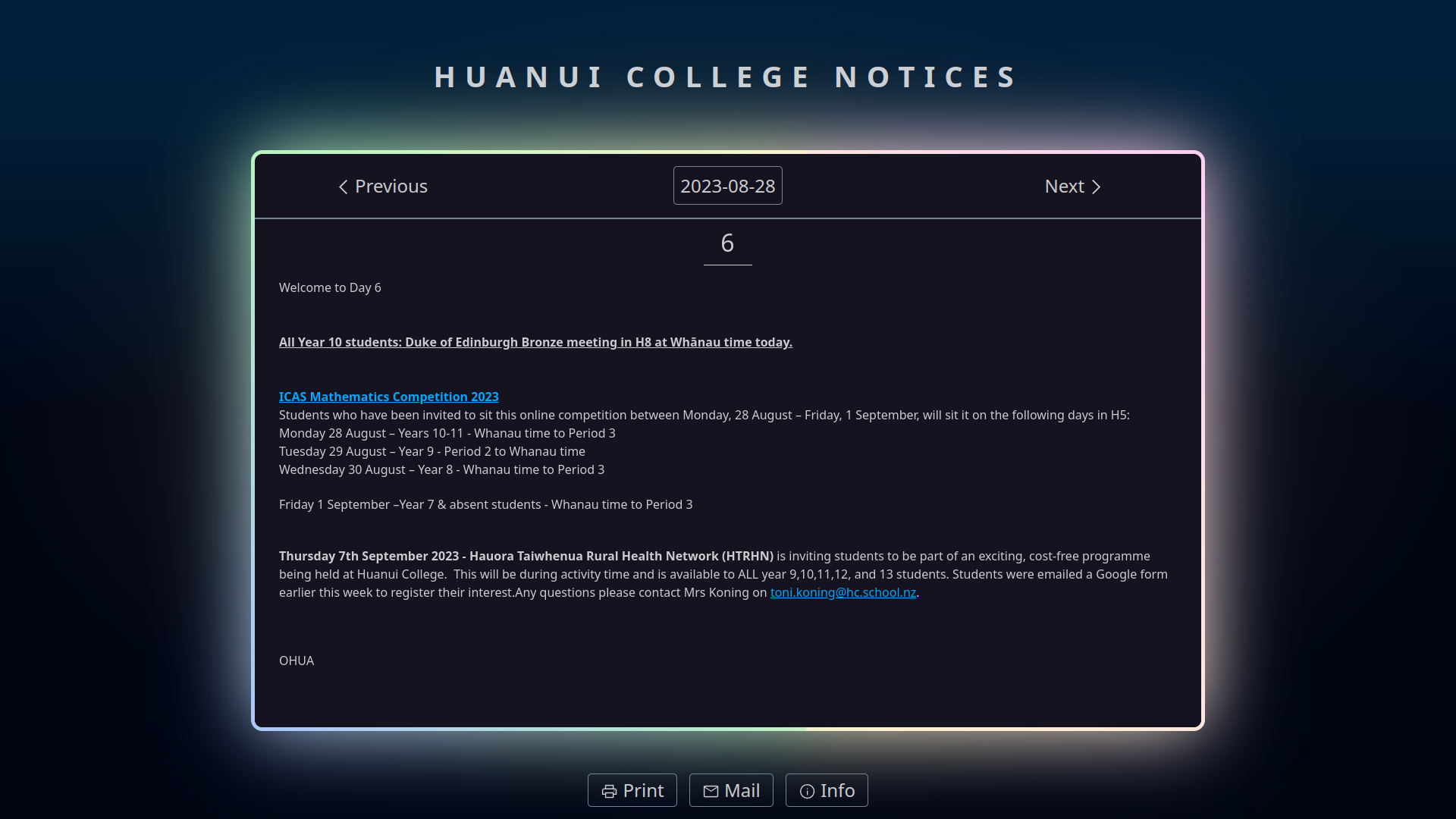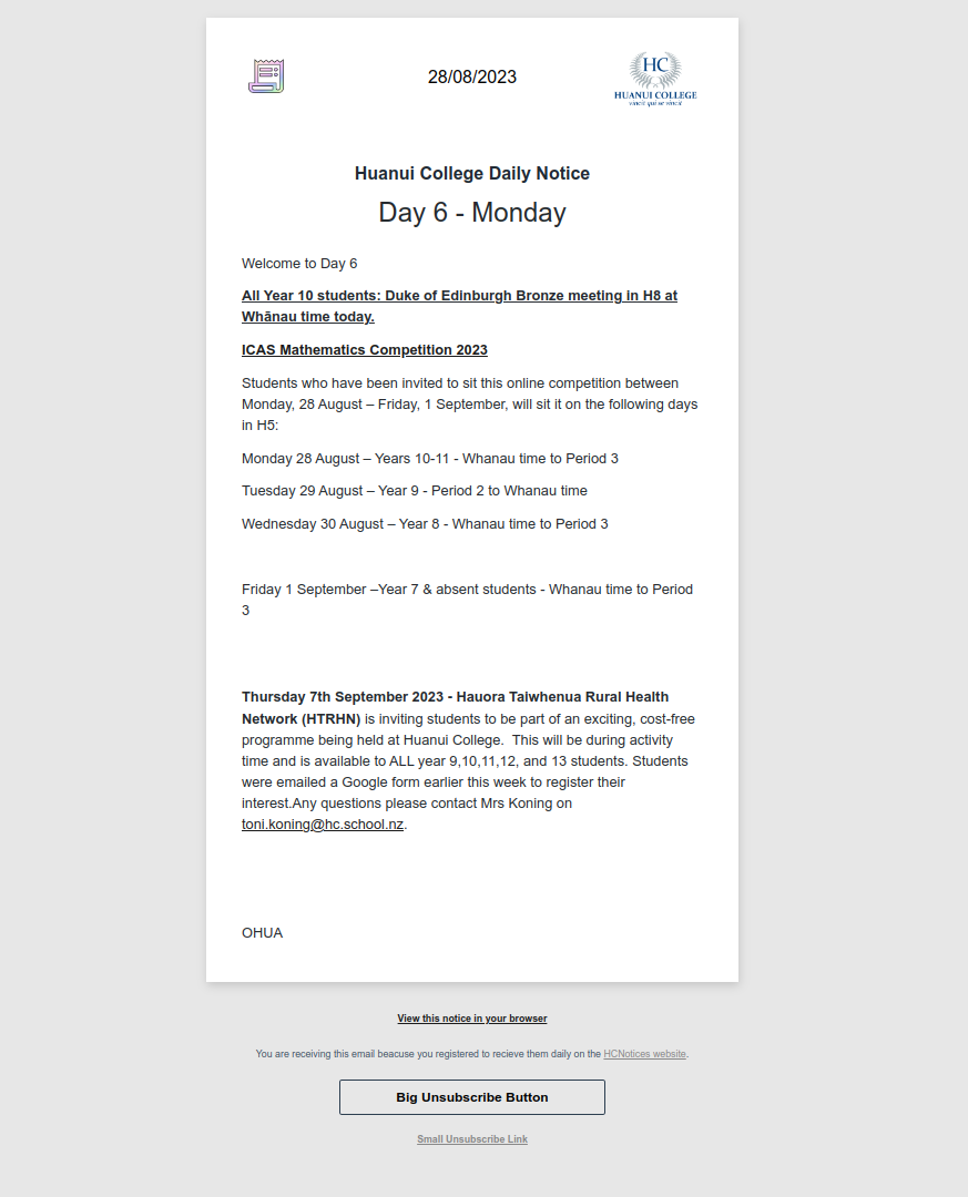 The notice data is stored by the School in a calendar event description. Unfortunately, the HTML output of that event description is very unstable, making it hard to style. To handle this, I broke the law setout by this StackOverflow post - and normalised HTML with regex.